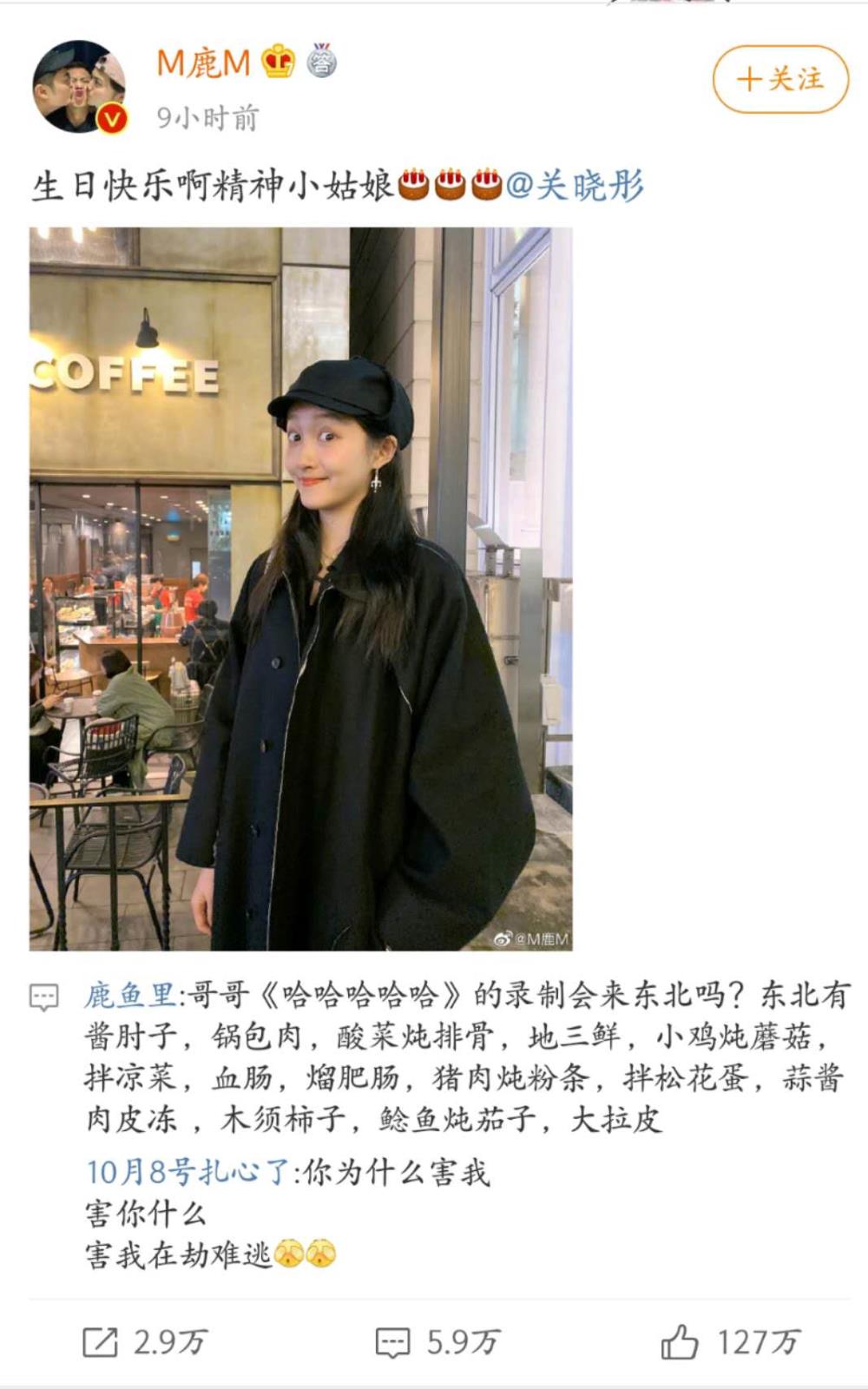 9月17日是关晓彤的生日,零点刚过,鹿晗便在微博晒出了一张关晓彤瞪眼搞怪的照片,为她庆生。鹿晗写道:“生日快乐啊精神小姑娘”,这也是两人公布恋情以来,鹿晗连续第三年卡点为关晓彤庆生。