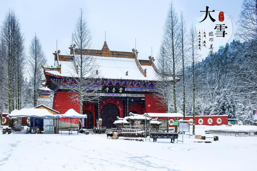 四川邛崃天台山景区迎来2021年的第一场大雪,纷纷扬扬的雪花就如天女散花般撒向整个景区。