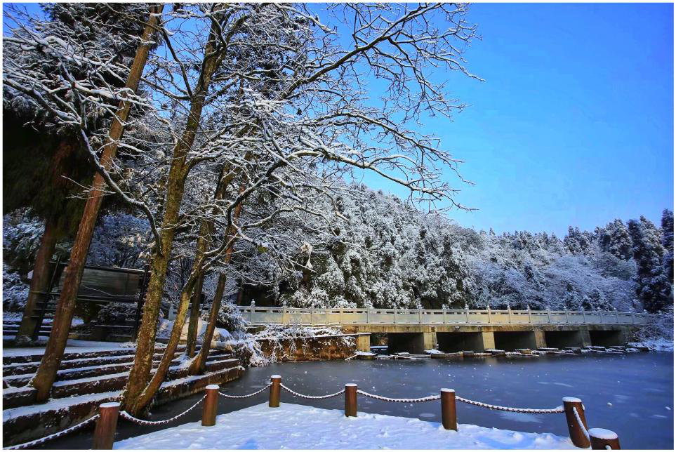 不过一晚上功夫,整个景区均被晶莹剔透的雪花覆盖,身临其中俨然步入如梦似幻的童话世界。