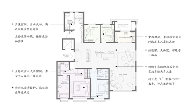 谈完外部因素,或许我们应该回归住宅本身,相信很多人置业的出发点都是希望给自己一个“家”,那“家”的概念是什么呢?正如《住宅读本》中描绘的那样,家不只是一个居住场所,更多的应该是心灵安稳之地。因此,家庭的分区布局、空间规划显得尤为重要。而傲云项目主打三款大户型产品,对屋内空间精心雕琢,立足多年豪宅建设经验,从舒适度和功能性出发,打造实用性、空间感兼具的臻稀住宅。