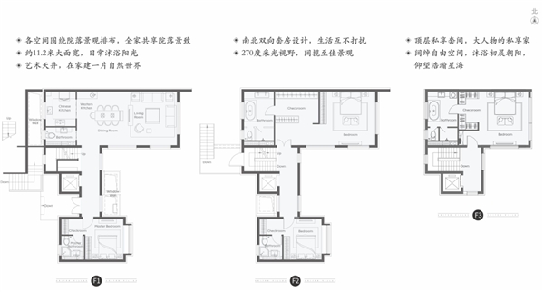 430-450m独墅合院,项目的楼王产品,单排单列,独揽广阔视野。先入院再入户,让归家充满仪式感;高效空间分割,每个房间都可以享受私家庭院景观;5.4米超大面宽全东向老人房,保障居住私密性的同时兼具会客便捷性;50平米超大主卧套房,双向采光观景,拥有独立衣帽间,尽享尊贵。