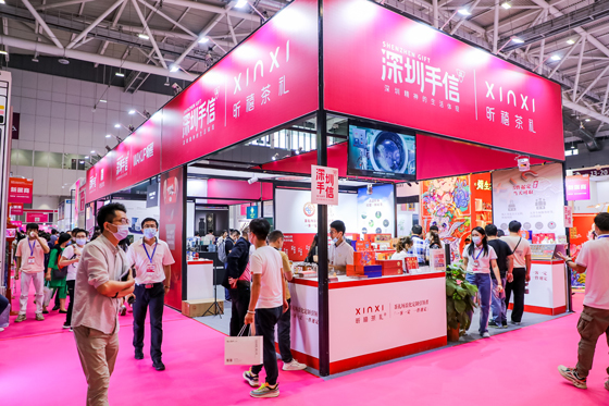 本次礼品展昕禧茶礼展是“茶与礼”美妙融合。以“昕禧红”为主题配色,糅合Logo、文字和图案带来了独特的视觉感受,让观众感受到由此呈现的中式好礼风范。经过长期筹备和现场设计,昕禧团队精心设计打造的展厅,突破传统的平面限制,让匠心好礼与品牌呈现不再拘泥于二维空间,配合视觉设计与灯光折射,打造了沉浸式“茶空间”体验。与深圳手信携手在众多品牌馆中脱颖而出,成为展会上一道颇具特色的风景,引得众多专业观众驻足。