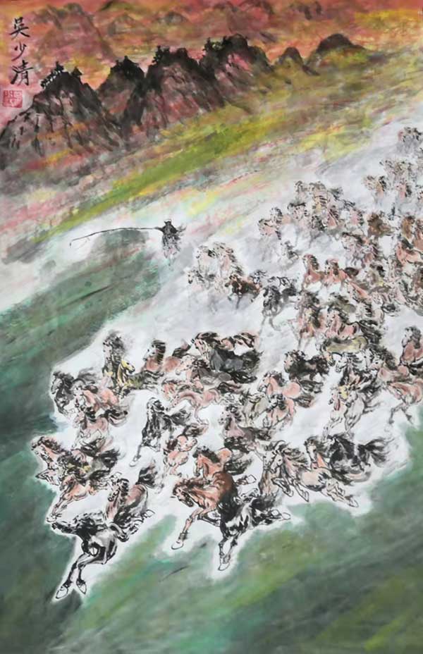 吴少清,女,1951年生。一級美術师,現任中国百家文化网传统文化研究院副院长;北京国都墨韵书画院理事;北京当代书画院院士;中國教育電視台“水墨丹青”、“名家講堂”两个栏目组的簽約藝術家,水墨丹青书画院会员。