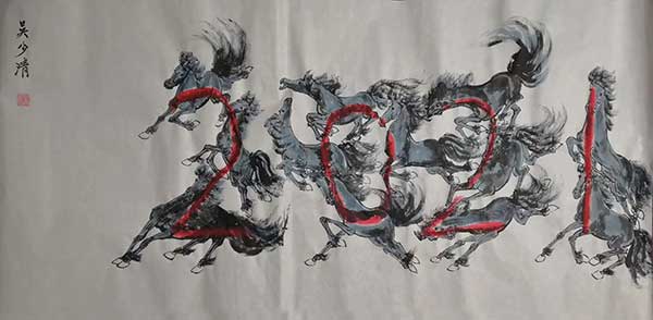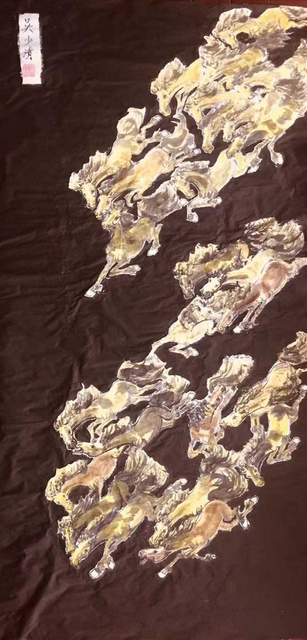 吴少清老师的奔马图系列作品,笔触有利、苍劲、 浑厚、动感十足,得到了国内及港澳几十位鉴定专家、名师的高度评价。