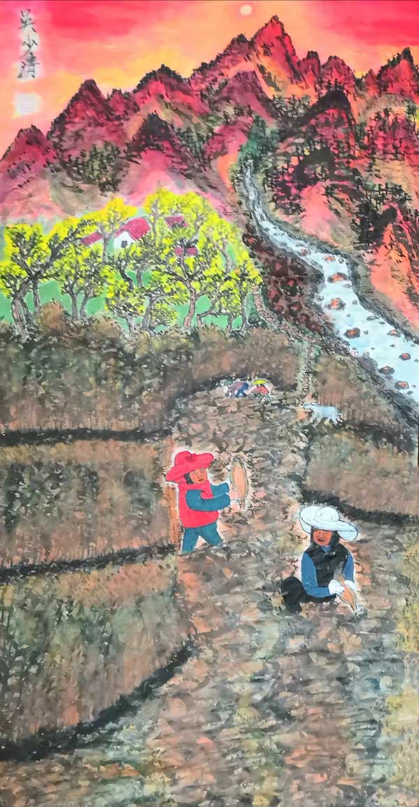 吴少清老师早年曾师从名画家于志远学习花鸟画,得到过多位大师的指点。在绘画创作中,她善于发挥自己丰富的想象力,以无拘无束的表现形式,表达创作思想和意境,形成了自己的画风。