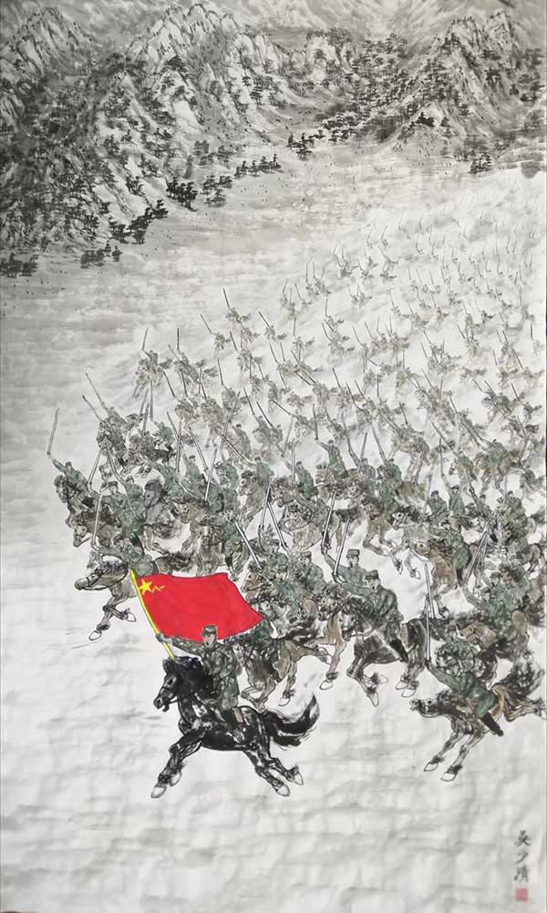 参加作品展。画有1069匹马的79米x0.69米的奔马图长卷,以及100米x0.69米的奔马图长卷,受到国内外艺术界的赞誉。多次受邀参加中央教育台书画春晚节目录制;参加全国书画家创作年会;创作峰会及高峰论坛。