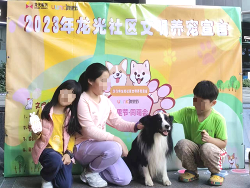“外出遛宠物使用牵引带;随身携带工具,及时清理粪便;做好基本训练,不在夜间吠叫不扰民;科学养护,定期注射疫苗……”在“优里节 同萌会——2023年龙光社区文明养宠宣言”承诺墙前,精心打扮的可爱萌宠在主人的带领下按下爪印,与主人一同立下“海誓山盟”。